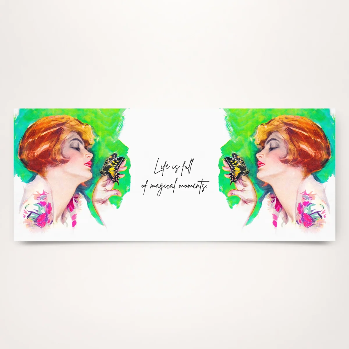 A woman, lost in the sight of a butterfly – delicate, dreamy, timelessly beautiful. This elegant illustration, originally created in 1926 by American artist Harrison Fisher, lends your mug not only style but also a touch of nostalgic poetry.