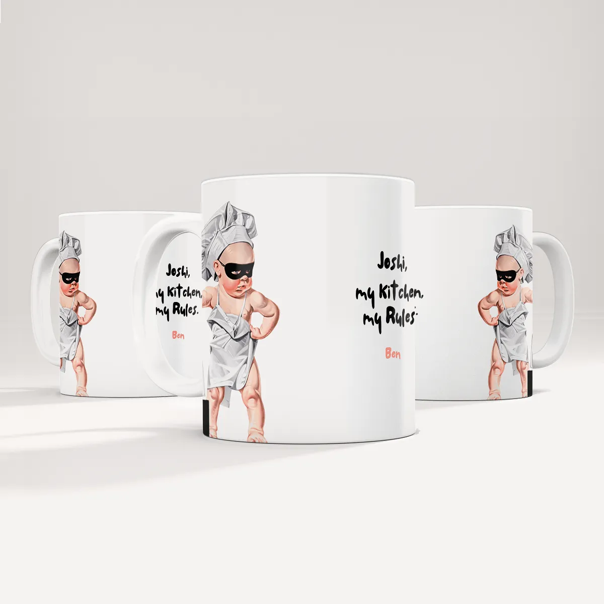 Funny customizable mug template ‘My Kitchen, My Rules’ for the BOSS in the kitchen. There can only be one ;-). This charming realization is sure to put a smile on someone’s face. Choose your favorite template online now and decide on one of our creative, pre-made mug designs…